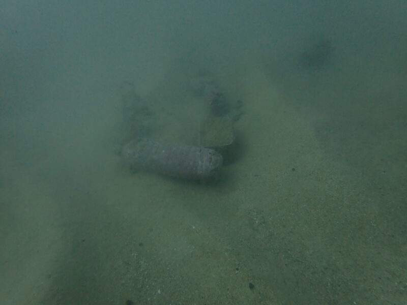 2本目では、昨年の清掃時にペットボトルや漂流ゴミが溜まっていたエリアを重点的に清掃しました。水底が泥質のため、少しの動きで視界が遮られる状況でしたが、昨年回収しきれなかったペットボトル類を発見・回収することができました。今年で6年目を迎えるこの清掃活動を継続してきた成果もあり、新たに捨てられたと思われるごみは以前に比べて少なくなってきたように感じられます。